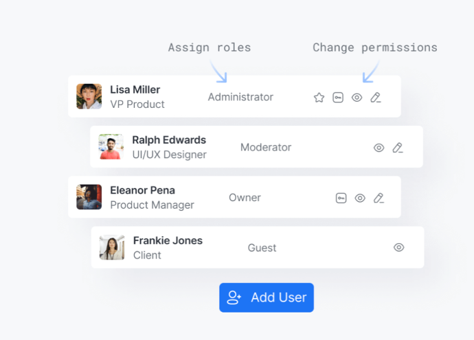 Ofrece la capacidad a tus equipos de interactuar en tiempo real y colaborar eficientemente en una plataforma estable. Personaliza los roles de los usuarios, los permisos y gestiona el acceso a la información confidencia.