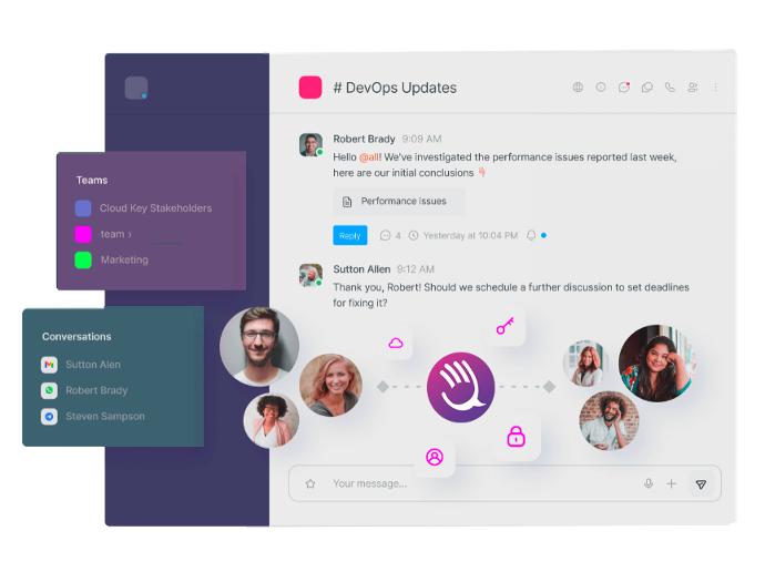 Agrupa todas tus herramientas de comunicación y mejora de la productividad en una sola plataforma, manteniendo la privacidad de tus datos intacta.
